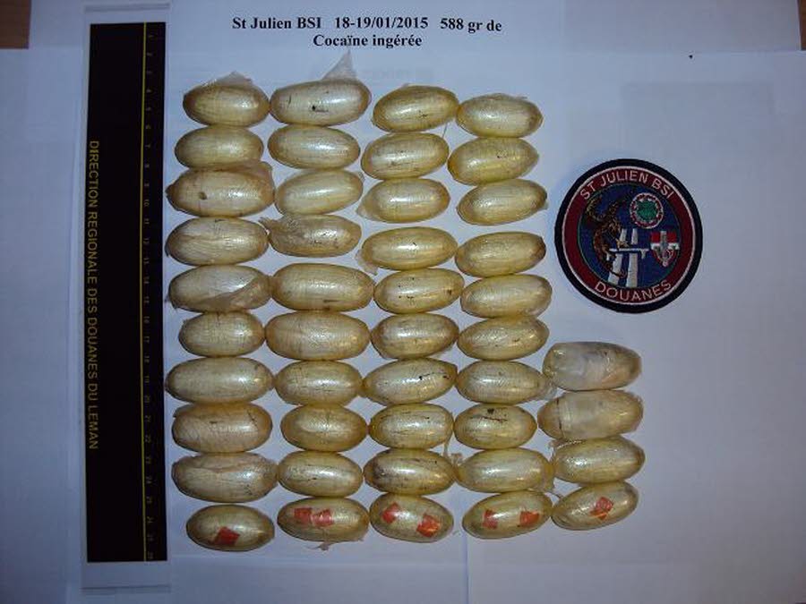 La découverte d’indices en contradiction avec les déclarations de l’individu incitait les douaniers à procéder à un test salivaire qui réagissait positivement à la cocaïne. C’est ensuite le scanner effectué à l’hôpital de Saint-Julien qui révélait la présence de 44 ovules représentant après expulsion un poids de 588 grammes de cocaïne.