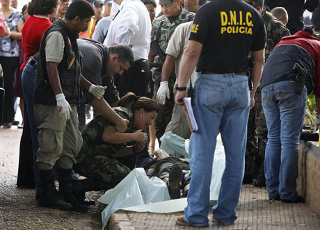 (***) certains ont payé cher d’avoir révélé ses liens. Début 2010, on découvre la plus grande fosse commune de Colombie, dans la commune La Macarena, département du Meta. Un des témoins raconte : «  Le commandant de l’Armée nous avait dit que c’étaient des guérilléros tués au combat, mais les gens de la région nous disent qu’il s’agit pour la plupart, de responsables sociaux et syndicaux, de paysans et des défenseurs de communautés, qui tous avaient disparu sans laisser de traces ». Des corps pour la plupart mutilés, ayant subi d’horribles sévices. À San Onofre, Sucre, dans une propriété connue sous le nom de « El Palmar », le chef paramilitaire « Rodrigo Cadena » jetait les cadavres des victimes, et même des victimes encore vivantes, aux caïmans qui se trouvaient dans un bassin. (….) C’est comme ça que les victimes de la torture étaient jetées aux caïmans. Beaucoup de personnes ont ainsi totalement disparu, jetés en pâture aux caïmans, ou jetés dans les fleuves ou à la mer, ou brûlés dans des fours crématoires. Salvatore Mancuso, par exemple, avait avoué que pour éviter la découverte du corps du leader indigène Kimi Pernía, il l’avait fait déterrer de la fosse et jeter dans le fleuve Sinú. D’autres paramilitaires racontent que pour cacher ses crimes, le même Mancuso avait ordonné d’enlever la terre d’une fosse située dans une propriété à Ralito, et de la vider de ses cadavres que son groupe avait remplis. Des enquêteurs disent qu’aujourd’hui, les « Aigles Noirs », héritiers des paramilitaires, déterrent le contenu de plusieurs fosses et le jettent dans les fleuves. (…) Les témoignages de paramilitaires et les résultats des équipes de médecins légistes ont permis de conclure que les groupes d’Autodéfenses Unies de Colombie, non contents d’avoir élaboré une méthode d’équarrissage des êtres humains, ont poussé l’horreur jusqu’à son extrême limite : ils ont donné des « cours » en se servant de personnes vivantes emmenées dans leurs camps d’entraînement. Francisco Villalba, le paramilitaire qui avait dirigé sur le terrain les atrocités d’El Aro (Antioquia), où 15 personnes ont été torturées et massacrées pendant 5 jours, révèle les détails de ces « cours » : « Il s’agissait de personnes que l’on amenait en camions, elles étaient en vie et attachées (…) chacune était livrée à un groupe de cinq (…) les instructions étaient de leur couper un bras, la tête… de les découper vivantes ». Une délégation britannique venue inspecter les fosses affirmera : Dans ses conclusions, la délégation a déclaré : « Après avoir entendu de pareils témoignages, nous estimons que l’armée colombienne est responsable de la majorité des violations des droits humains contre la population civile », et que : « l’activité paramilitaire persiste, particulièrement dans les régions rurales, de même que les liens étroits entre les paramilitaires et l’armée sont une évidence. » Un des militaires repentis, Francisco Enrique Villalba Hernández qui avait rendu responsable le président Uribe en personne du massacre d »El Aro, le 25 octobre 1997, a lui-même été assassiné à La Estrella près de Medellin, en avril 2009.