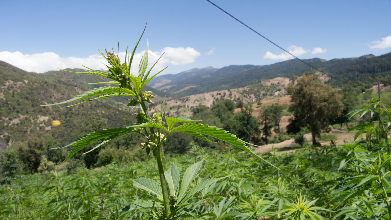A Ketama, dans le nord du royaume, près de 80 000 hectares produisent annuellement 100 000 tonnes de kif brut, engendrant près de 2 milliards de dollars de revenus. Des superficies verdâtres s’étalent à l’infini. Au milieu des champs, un nombre incalculable de hangars de stockage, d’ateliers de fabrication de différentes variétés de “zetla” [cannabis], du “double zéro” à la “gabba”, comme on dit ici [pour désigner les qualités de fabrication]. Les lieux du seigneur sont inviolables ; il serait plus facile d’aller en touriste sur la Lune que de pénétrer dans ce site industriel à ciel ouvert. Au bord de la route, des bambins et des femmes aux tatouages bien visibles proposent de petites plaquettes de résine de cannabis à des prix concurrentiels – de petites quantités comme échantillon avant d’éventuelles commandes. Mais le gros trafic ne s’échafaude pas sur les trottoirs.