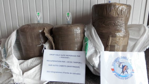 Ce lundi, à 8h30, l’hélicoptère Ecureuil « Racam » en mission de surveillance maritime dans le canal de Sainte-Lucie a observé une yole se dirigeant vers le sud de la Martinique à 4 miles des côtes françaises. Les occupants du bateau suspect ont rapidement détecté l’hélicoptère, accéléré en jetant par dessus bord des ballots. Le navire a fait demi-tour vers l’île de Sainte-Lucie poursuivi par « Racam ». Au même moment, prévenue, la vedette rapide des douanes du Marin « Tarpon » a rejoint la zone en quelques minutes, forte de ses 3 moteurs et 900 cv de puissance. Les trafiquants ont quitté les eaux territoriales françaises. « Racam » a cessé la poursuite et guidé le semi-rigide des garde-côtes sur les ballots rejetés. 28,5 kilos ont été repêchés.