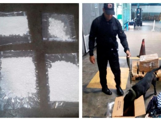 Según el informe , los agentes aduaneros al pasar la carga por el scanner notaron algo extraño procediendo a utilizar los servicios de la unidad canina de la Policía Nacional de la sección de Narcóticos, marcado por el perro como positivo por supuesta cocaína, uno de los dos bultos analizados.