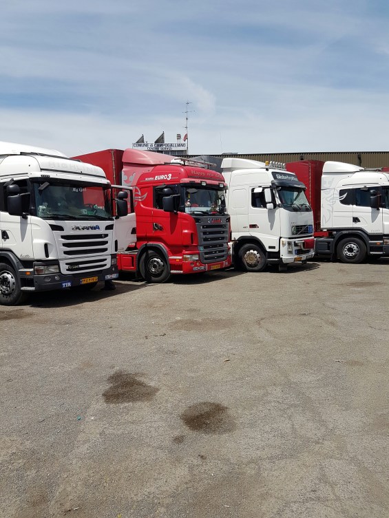 Camions turcs en attente à Campogalliano (Italie) – Photo NS 55 DNRED