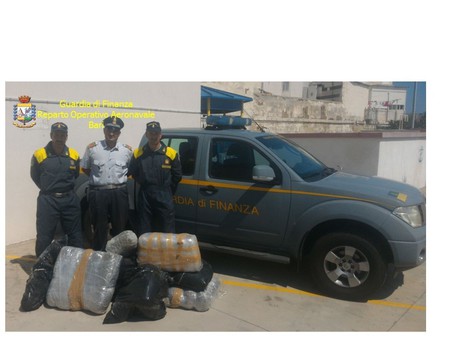 (ANSA) – BARI, 29 AGO – Un carico di 80 kg di marijuana che veniva trasportata a bordo di un gommone proveniente dell’Albania e diretto nel Salento, è stato sequestrato dalla guardia di finanza al termine di un inseguimento nelle acque del canale d’Otranto. I due scafisti albanesi che erano a bordo, uno di 46 anni l’altro di 18, sono stati arrestati.