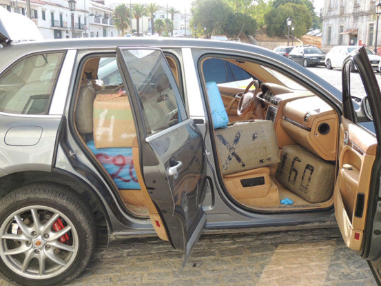 un Porsche Cayanne, estaba cargado con 32 fardos de hachís, cada uno de unos 30 kilos de peso. El otro coche es un BMW X5