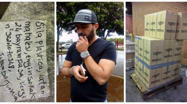 Detalles del embalaje, el detenido y las cajas que fueron incautadas. Foto: Gentileza.