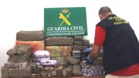 La Guardia Civil de Alicante ha detenido a un hombre de nacionalidad española y 40 años de edad, como presunto autor de un delito contra la salud pública (tráfico de drogas) e incautado 180 kilos de hachís, una motocicleta utilizada para transportar la droga y dos teléfonos móviles.