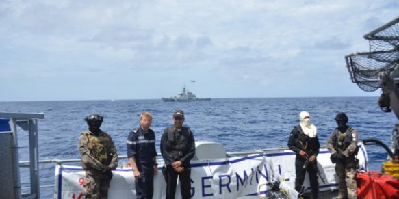 Dimanche dernier, la frégate de surveillance Germinal de la Marine nationale aux Antilles a intercepté un « go-fast » suspecté de trafic de stupéfiants à une quarantaine de milles nautiques, à l’ouest de l’île de la Dominique après un rendez-vous à la mer avec un navire de pêche.