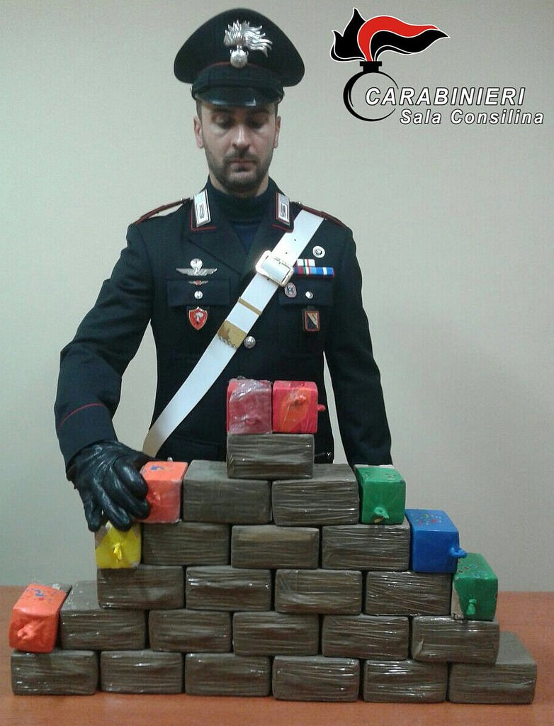I carabinieri della Compagnia Carabinieri di Sala Consilina, coordinati dal Tenente Davide Acquaviva, hanno arrestato, in flagranza di reato per concorso nella detenzione ai fini di spaccio, due uomini pregiudicati, di 34 e 53 anni, quest’ultimo ex guardia giurata, della provincia di Vibo Valentia.