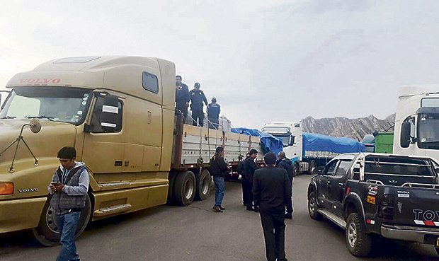 Los tráilers que llevaban el carbón con droga fueron intervenidos la noche del miércoles. Partieron de Lima y tenían como destino la ciudad de Oruro, Bolivia.