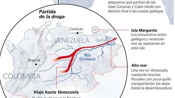 Colombia, Venezuela y Ribeira son los escenarios de una compleja investigación de narcotráfico a gran escala que tenía como objetivo el transporte por mar de 1.300 kilos de cocaína que acabarían siendo descargados en Barbanza, concretamente en la playa de Espiñeirido. La operación nunca llegó a materializarse, según parece, por la elevada presencia de fragatas de EE.?UU. en el perímetro de la costa venezolana para, precisamente, hacer frente al narcotransporte procedente de este país en su parte más próxima al Caribe. Aún así, para los investigadores está constatado que los implicados tenían su parte del plan financiada y cerrada, y si el alijo nunca llegó a Galicia fue por culpa de sus socios en Iberoamérica.