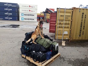 Droga estava dentro de malas em container de auto-peças (Foto: PM/Divulgação)