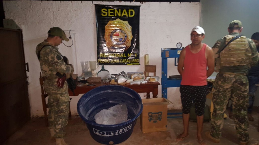 Agentes da Secretaria Nacional Anti Drogas (Senad) encontraram na casa um quilo de substância usada para aumentar o volume da droga. Conforme informações do site Porã News, o laboratório preparava aproximadamente 30 toneladas de droga por mês.