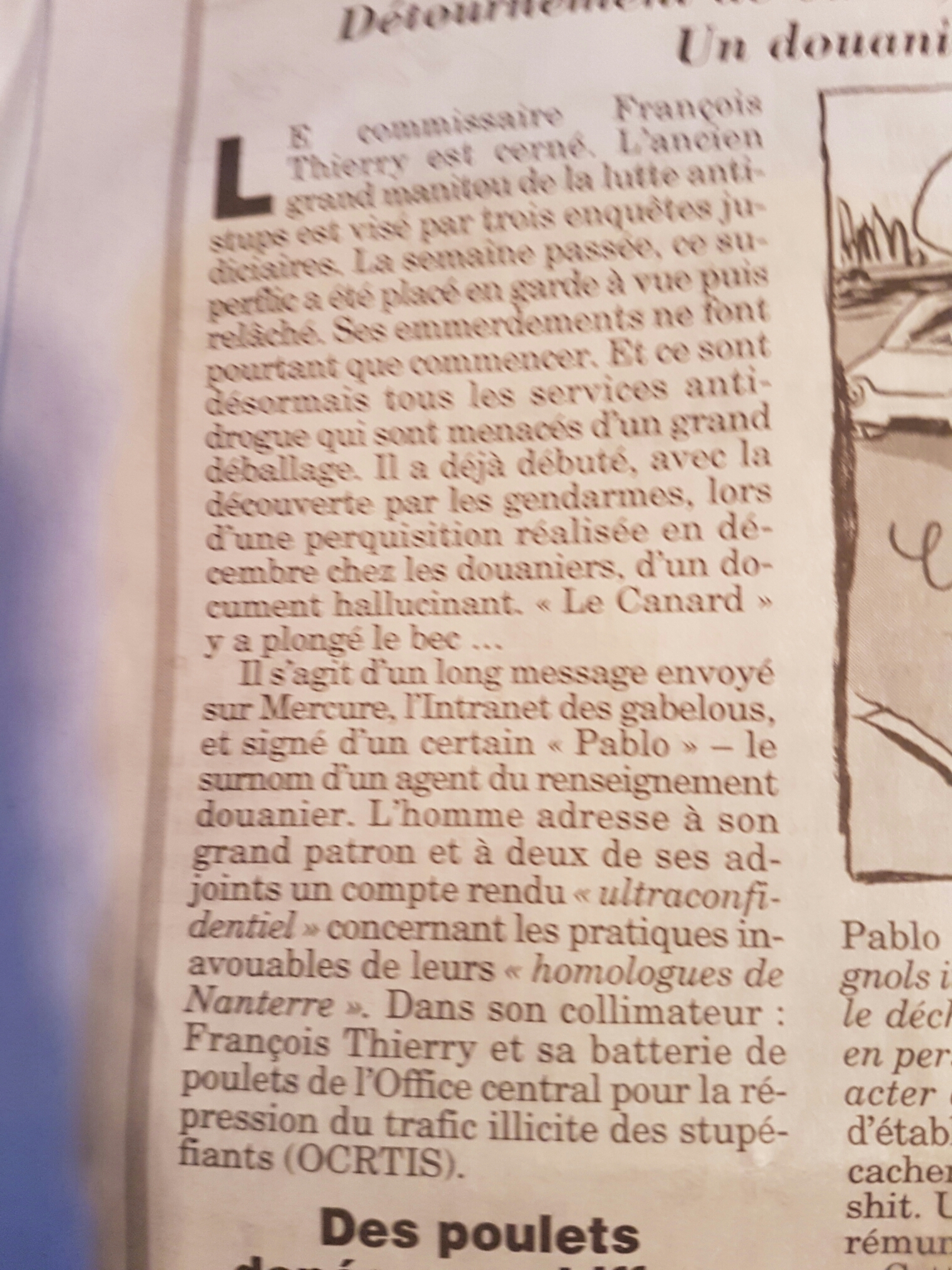 DNRED (les narcos de l’Ocrtis): en application de l’art 40, Pablo, le douanier anonyme, devait pour le moins avertir le Procureur…