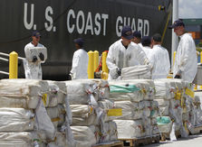 Miembros de la Guardia Costera estadounidense descargan 7,5 toneladas de cocaína, en Miami Beach, Florida, incautadas a un submarino frente a la costa caribeña de Honduras, en agosto del 2011. (AP)