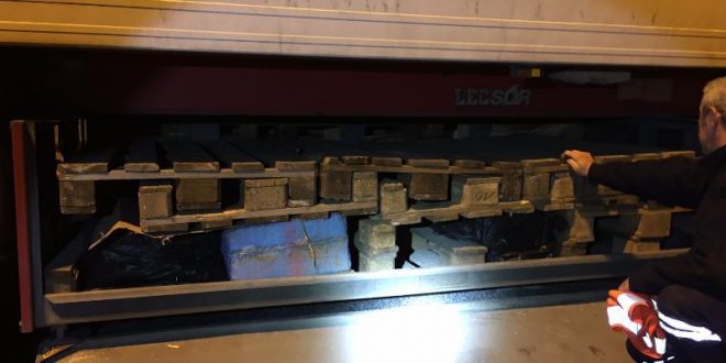 Les douaniers entreprennent l’inspection de l’ensemble routier et découvrent, dans les portes palettes, 12 ballots contenant un total de 382,3 kg de résine et pollen de cannabis.