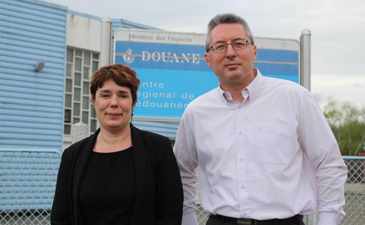 Annabelle Guillonneau, chef de la division des douanes d’Angers, et Arnaud Leclercq, chef du bureau du Mans. Photo « Le Maine Libre »