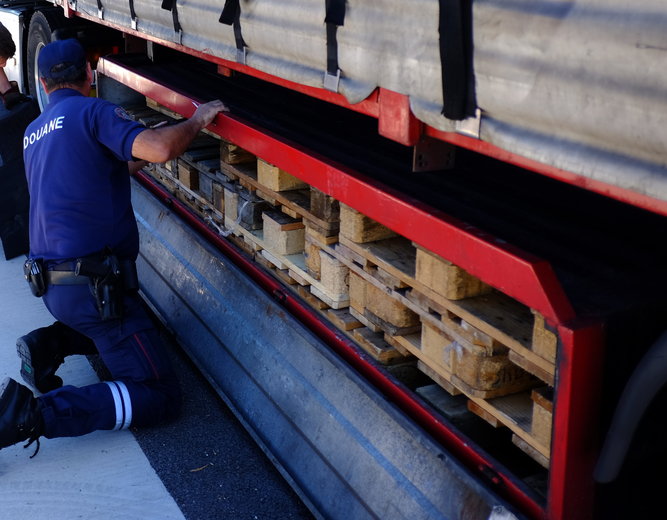 35 kg d’herbe et 14 kilos de résine de cannabis pour une valeur totale de 95 000€ sur le marché de la drogue. Les trois grands sacs de toile qui étaient cachés dans le camion d’Hakim, 39 ans, promettaient d’être bien plus rémunérateurs que les milliers de cagettes remplies d’oranges qu’il transportait en toute légalité. Les services de douanes ont arrêté son poids lourd au péage d’Arles, dans la nuit de jeudi à vendredi. Ce ressortissant marocain venait d’Almeria, dans le sud de l’Espagne, et devait rejoindre Naples, en Italie.