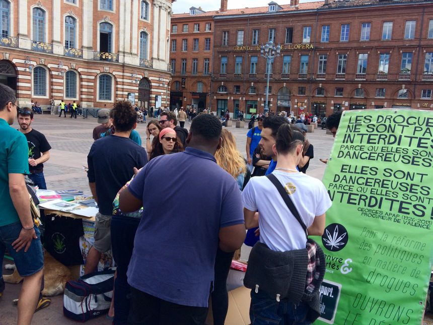 Pas de marche à Toulouse mais un stand d’information place du Capitole pour la Marche mondiale du cannabis 2017 © Radio France – Stéphanie Mora