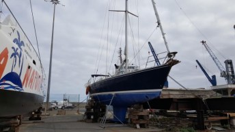 O veleiro onde seguia o carregamento de cocaína encontra-se em doca seca no Caniçal.