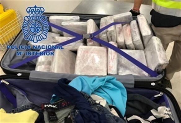 ESPAÑA: intervenidos en Barajas 22 kilos de cocaína ocultos en una maleta