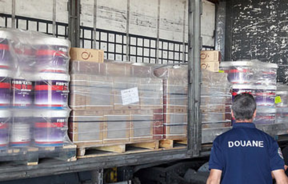 Le 24 mai à 8h30, c’est au tour des agents de la brigade des douanes de Millau de contrôler un camion immatriculé en Espagne transportant des pots de peinture entre l’Espagne et la France. La visite du chargement permet de découvrir deux palettes de carrelage dissimulant 408 kg de résine de cannabis. Les deux chauffeurs, de nationalité espagnole, ont été interpellés.