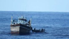 The suspicious dhow was intercepted by two teams of the British war ship in the Indian Ocean in an area not normally known for fishing.
