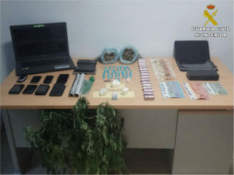 La Guardia Civil de Alicante ha detenido en Benissa a 4 españoles, de 53, 50, 48 y 37 años, como presuntos autores de un delito de tráfico de drogas. Se han incautado 149 gramos de cocaína, 59 gramos de marihuana, 3 plantas de marihuana, 4 gramos de hachís, 1.717 euros en efectivo, 1 ordenador portátil, 8 teléfonos móviles, 1 disco duro y 2 balanzas de precisión, así como elementos para preparar las dosis de cocaína (alambres, bolsitas de plástico y precinto).