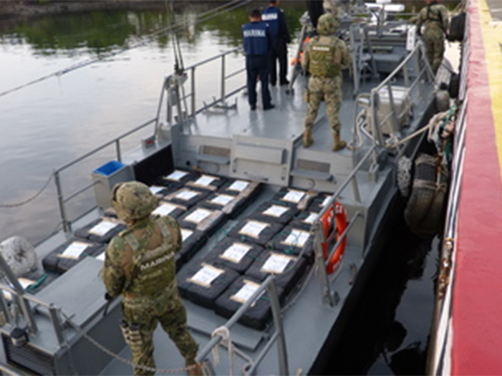 La Secretaría de Marina-Armada de México (Semar) aseguró en Puerto Chiapas, en funciones de Guardia Costera, 27 bultos de cocaína con un peso bruto aproximado de 588.5 kilogramos, y los puso a disposición del Ministerio Público de la Federación con sede en Tapachula.