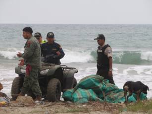 Al sitio llegaron policías y militares, que contaron unos 19 sacos, según Juan Pablo Gonzabay, presidente de Palmar, quien detalló que 17 unidades estaban en la playa y dos flotaban en el estero Jambelí.