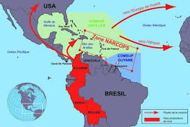 en heurtant sa queue et en le pourchassant côte à côte quelques instants avant de le renverser complètement sur le côté. Les policiers brésiliens pratiquent des abordages dignes des corsaires d’antan pour bloquer les actes de piraterie aérienne sur leur territoire ! Il faut dire que ce marché brésilien s’annonce… gigantesque (pour la Marijuana, c’est le Paraguay qui fournit), et l’on constate aussi sur les deux cartes ci-dessous le rôle majeur de la Bolivie, qui sert aussi de passage, en prime, à la coke péruvienne) :