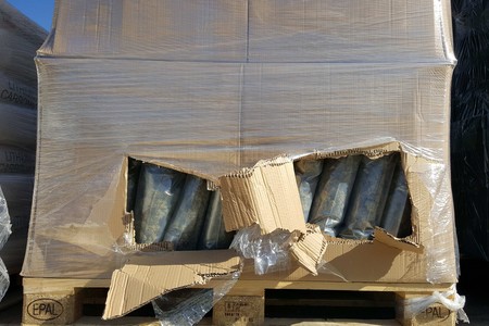 Le débâchage puis la fouille de la remorque permettent de découvrir, au sein d’un chargement de sacs de carbonate de lithium, d’emballages en mousse et de bouteilles de vin, 3 palettes composées de 36 cartons non identifiés.