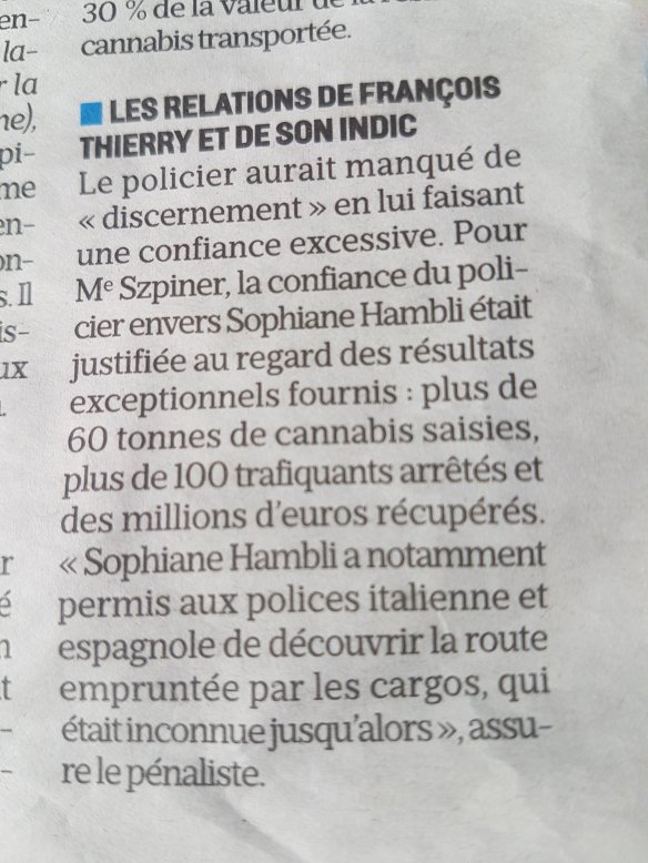 Reste en suspens une énigme: j’ai lu que la collaboration de François Thierry comme boss de l’OCRTIS avec son trafiquant préféré avait permis l’arrestation de 100 personnes et 60 tonnes de drogue!