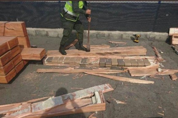 COLOMBIE (Barranquilla): les 2 tonnes 438 de coke étaient planquées dans des pièces de bois pour expédition à Algeciras (Espagne)