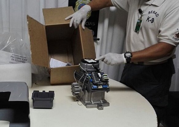 En la segunda encomienda que iba a ir a Hong Kong, había también un termo que tenía 350 gramos de cocaína además de un motor para portones eléctricos, que también tendría droga en su interior.