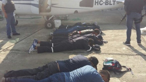 9 personas fueron detenidas con 27 sacos de yute llenos de bloques de cocaína y cuatro paquetes grandes de dinero. Los agentes decomisaron la droga dentro de una avioneta que aterrizó 9 en el antiguo aeropuerto de San Vicente al norte de Manabi.