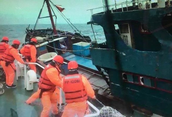 Penghu County police and Coast Guard officers intercepted a Chinese fishing vessel near the middle of the Taiwan Strait carrying 502kg of amphetamine precursors, yesterday, December 15.