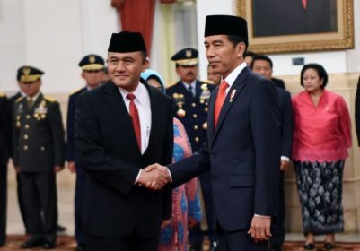 President Joko Widodo (right) shaking hands with the new head of the National Narcotics Agency (BNN) Heru Winarko. (Photo: Cabinet Secretariat Office)