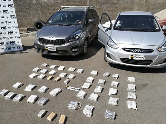 Un total de 44 kilos y 660 gramos de clorhidrato de cocaína, distribuidos en 46 contenedores, más dos vehículos, fue el total de lo incautado por la Brigada Antinarcóticos y Contra el Crimen Organizado (Brianco) de Arica luego de una extensa investigación que culminó con la detención de tres chilenos y un ciudadano peruano.