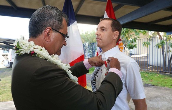 Le président du Pays, Edouard Fritch, a remis jeudi une médaille de chevalier de l’ordre de Tahiti Nui à l’inspecteur des douanes, Renaud Ferrières, saluant tout particulièrement son travail dans les opérations de saisie de centaines de kilos de cocaïne à Arue et Nuku Hiva. Un autre douanier sera récompensé à la fin du mois.