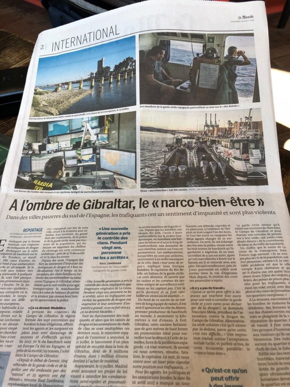 Enveloppés par la brume matinale, une vingtaine de trafiquants de drogue déchargent sur le sable une cargaison de haschisch sur la plage du Tonelero, ce mardi d’août. Elle vient d’arriver du Maroc à bord d’une embarcation semi-rigide, et ultrarapide. Ils la transportent sans traîner vers trois 4 x 4 stationnés à quelques mètres de là, sous l’œil presque blasé des rares promeneurs matinaux. Il est 7 heures. De là, les colis partent vers une « garderie », nom donné aux entrepôts où la drogue sera stockée, le temps d’être convoyée vers ses différents destinataires européens.