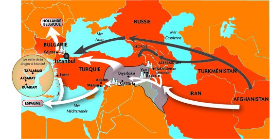 Carte du trafic d’heroïne © FMM/Alexandre NÉRACOULIS