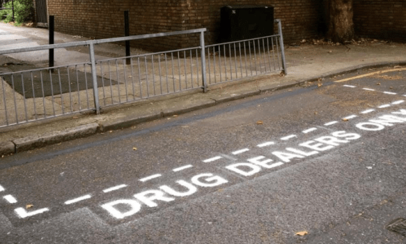 Excédés par l’impunité dont bénéficient les trafiquants de drogue, des habitants du quartier de Tower Hamlets, à l’est de Londres, tirent la sonnette d’alarme. Ce dimanche, des panneaux de signalisation caricaturaux ont été installés dans les rues par le groupe d’artistes Columbia road cartel, rapporte le Guardian