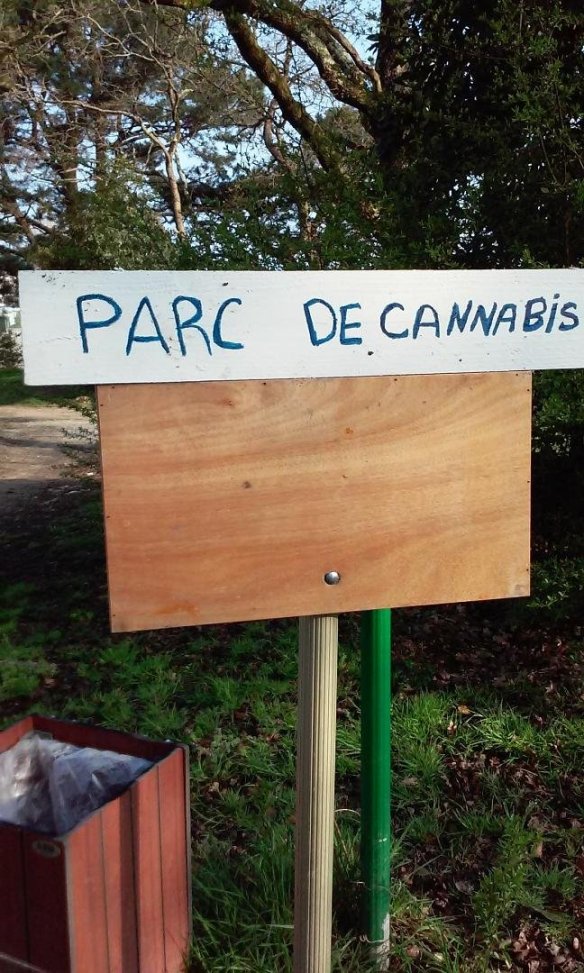 Photo d’une pancarte posée par des riverains « Parc de cannabis » (et non « de kérizac)