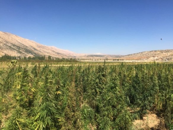 Une camionnette transportant des ouvriers syriens pénètre dans un champ bordé de pommiers et de vignes à Yammouné. Dans cette localité de la Békaa, l’économie a toujours dépendu du haschich, enrichissant ou appauvrissant ses habitants, et cette année est vraiment une année noire.