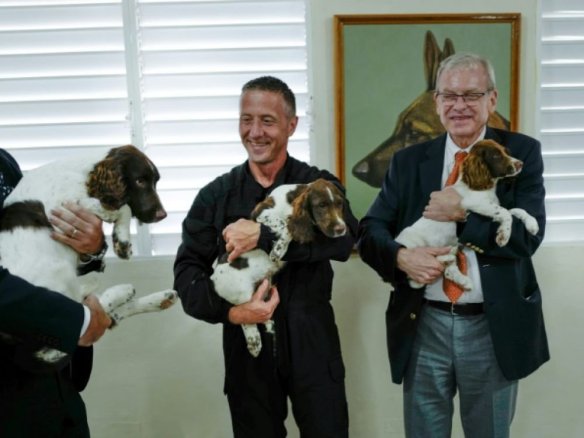 Sniper, Search et Sniffer: trois chiots de la race Springer Spaniel, spécialisée dans la détection de drogue et d’argent, ont été offerts vendredi par la France aux autorités cubaines.