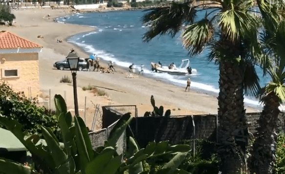 A plena luz del día, ante los bañistas, un grupo de narcos alija desde una lancha numerosos fardos de hachís en una playa de Estepona. Es una imagen sobrecogedora por la impunidad con la que actúan los delincuentes, de entre los que se escucha una voz seca que lanza un