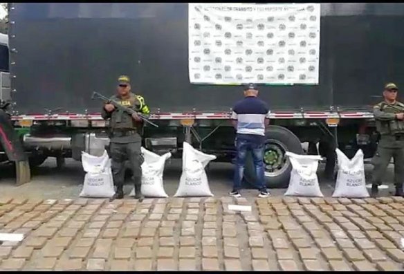 Camuflados en más de 20 bultos de azúcar, las autoridades hallaron 300 Kilos de clorhidrato de cocaína, que eran transportados en un camión en la vía que conduce de Santa Fé de Antioquia hacia el municipio de Apartadó en el sector conocido como Heliconias de Cañasgordas.