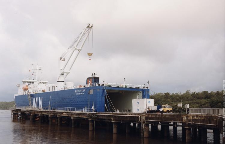 La drogue était cachée dans une caisse aimantée fixée à la coque du MN Toucan, l’un des navires qui amène en Guyane les éléments des fusées Ariane et Soyouz.