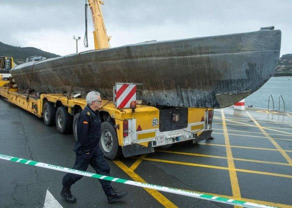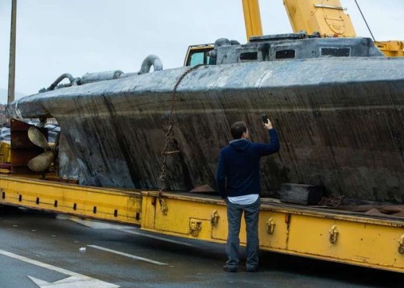 Le sous-marin ayant servi à transporter la cocaïne à Aldan, au nord de l’Espagne, mercredi 27 novembre. LALO R. VILLAR / AFP