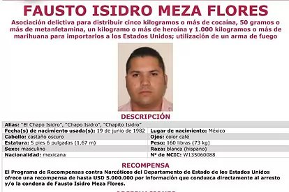 Les États-Unis offrent une récompense de cinq millions de dollars pour la capture de Fausto Isidro Meza Flores, alias « Chapo Isidro », accusé de piloter un trafic de drogues, a indiqué vendredi l’ambassade américaine au Mexique.